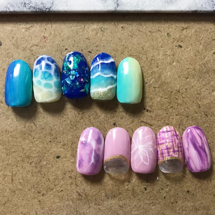 昨日のネイルチップの気に入らないのを作り直しました。ワンカラーとグラデを短時間できれいにできるようになったほうが就職にはよいのでしょうが、グラデ難しすぎです、、、。チップにアートしてたほうが楽しいよ、、、