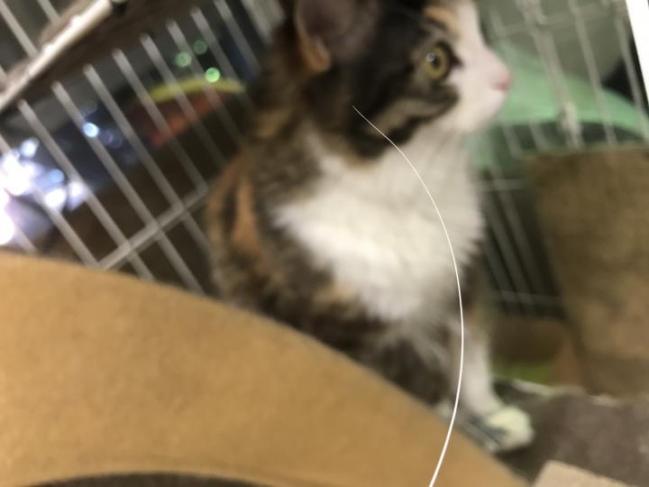 おはぎちゃんのテントにおひげが一本。