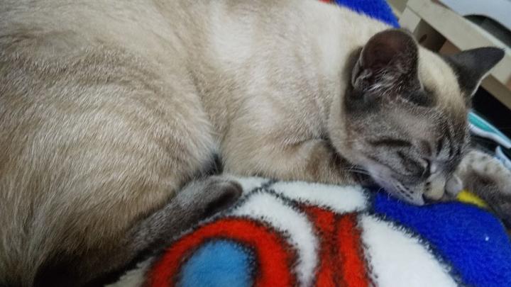 なんとか ヒーリングミュージックで落ち着かせて眠りにつきました😿