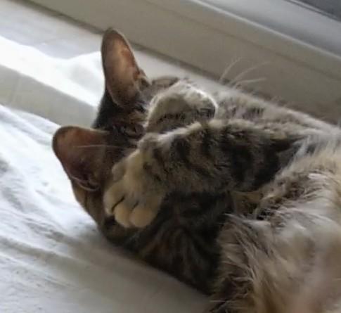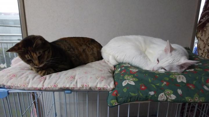 暖かくなってきたからか、猫達はこたつの外に居る事が増えました。
