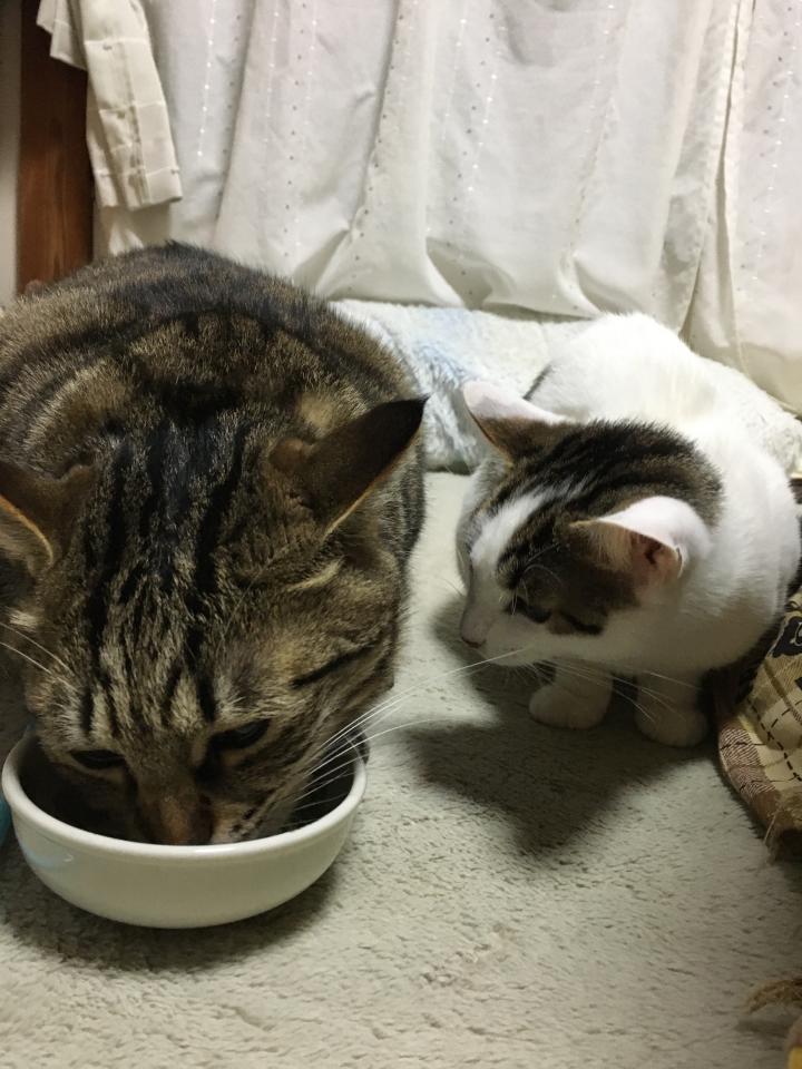 ミルクは毎回の事ですが、自分のご飯を速攻で食べて、ゲンのご飯を狙います。