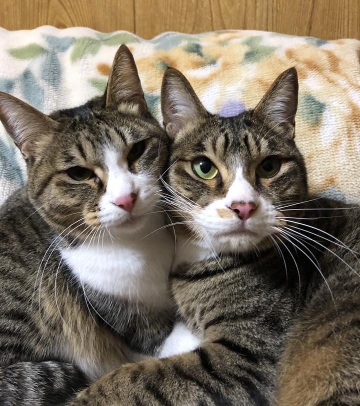 こんな風に『ぼん』が『あられ』のお顔をキレイにするからおヒゲが無くなるんですよ😓
