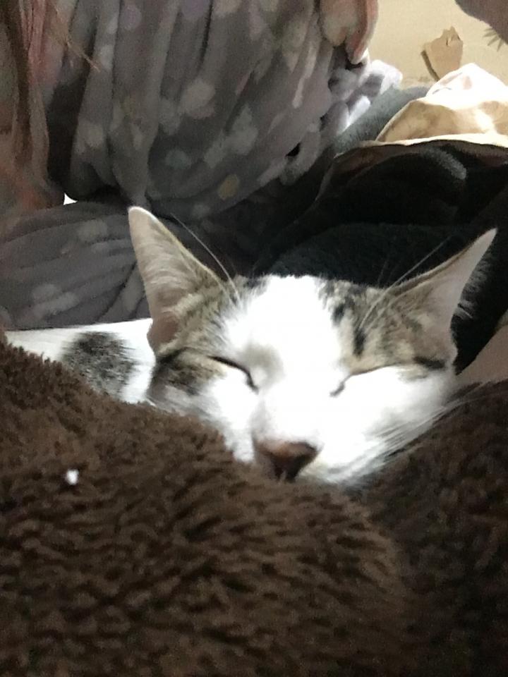隣で寝るだけなら構わないのに、昨夜は何故か私のお腹の上で丸まって寝てましたからね😅