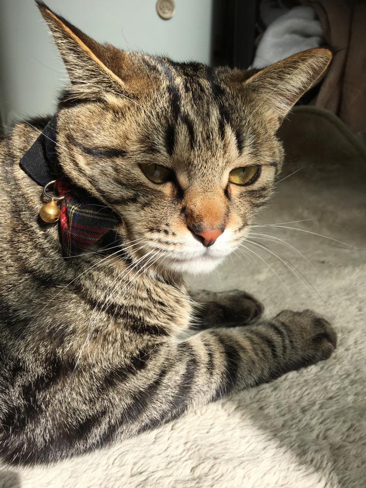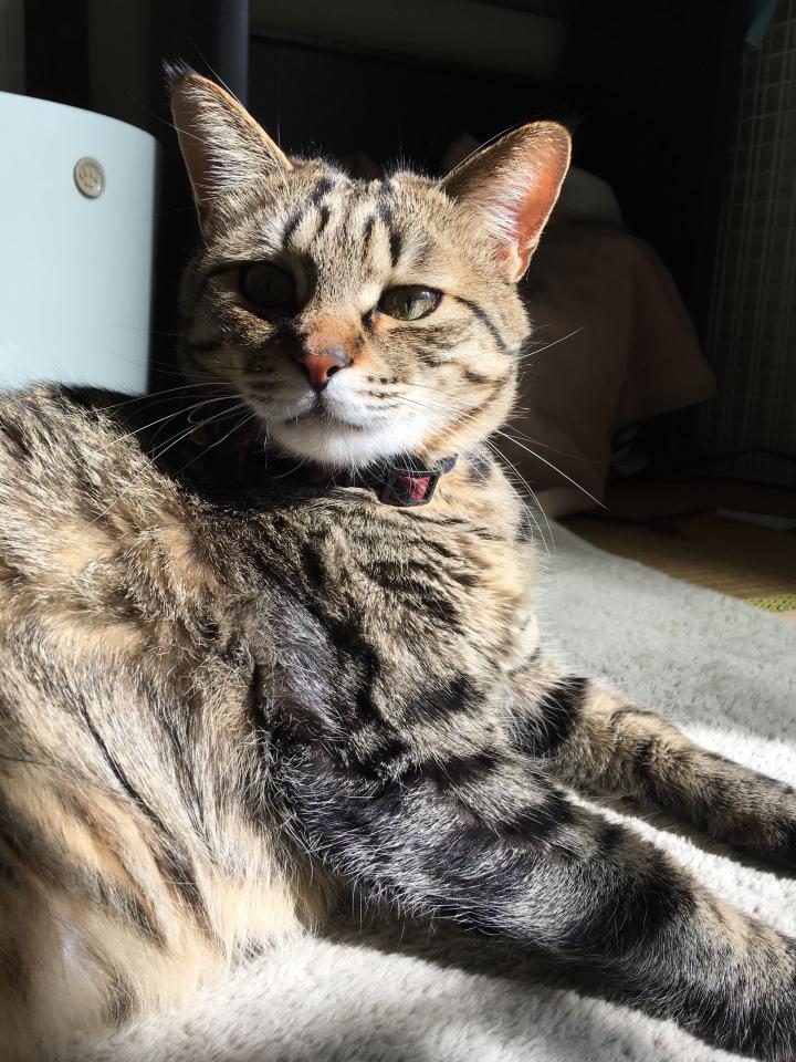 ゲンに日光浴させてる間に子供部屋の窓を開けに行ったらゲンも何故か付いて来て、子供部屋の日が当たる所に座り込みナデナデの要求😅