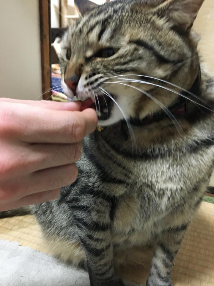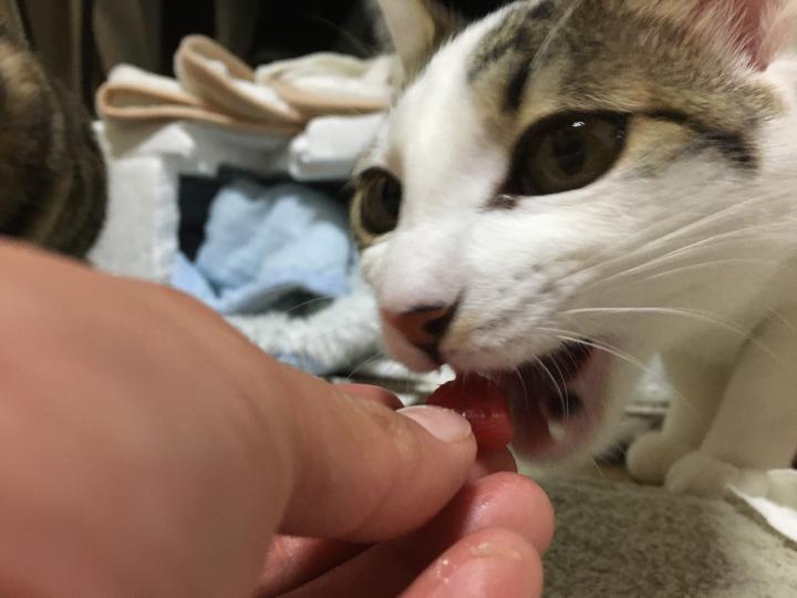 マグロの気分じゃないのかなー?と思いながら中トロを差し出してみたらこの状態。