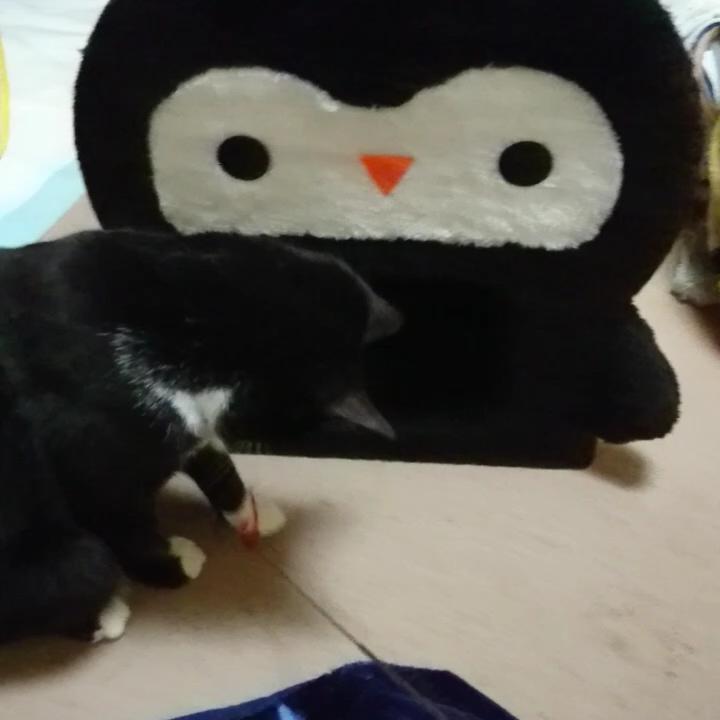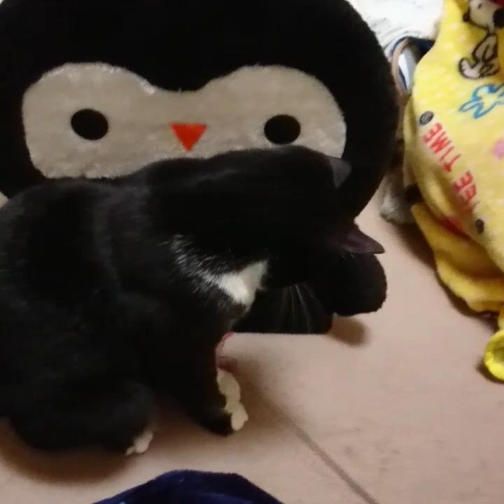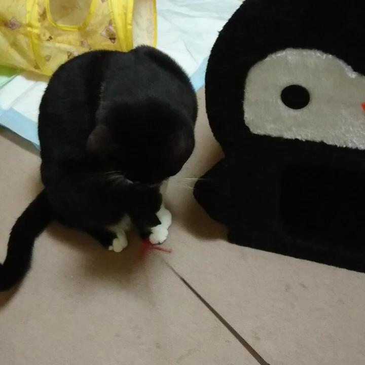 右足でちょいちょい❗掴みきれないにゃ➰😹
