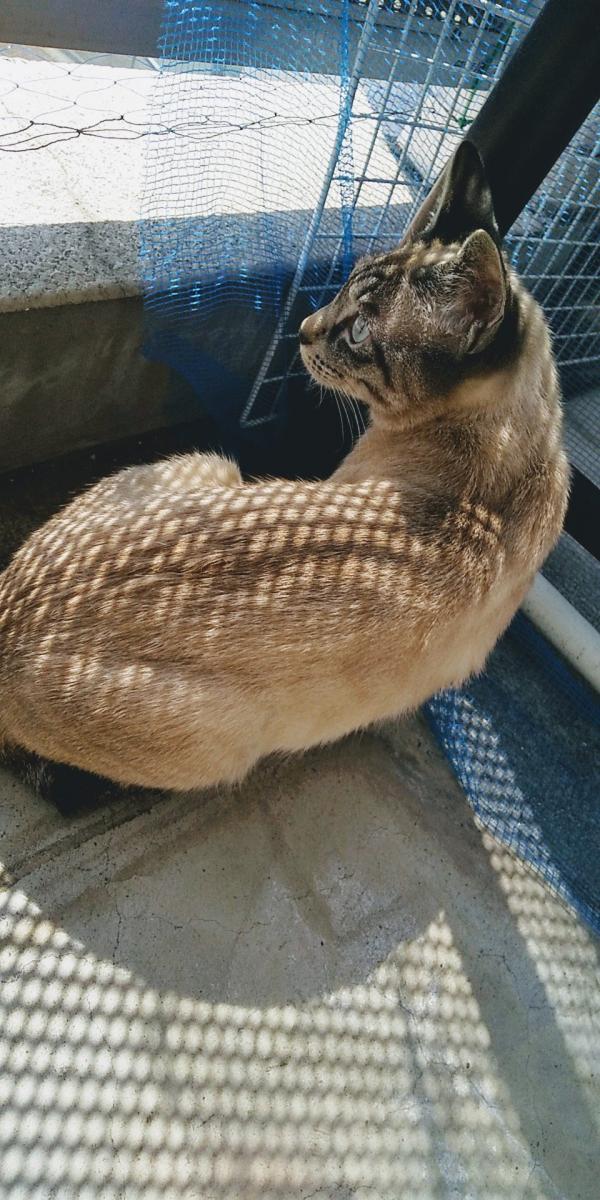 というわけで、朝のベランダにゃるそっくから、朝のじゃらしタイムを削られたシャルルが