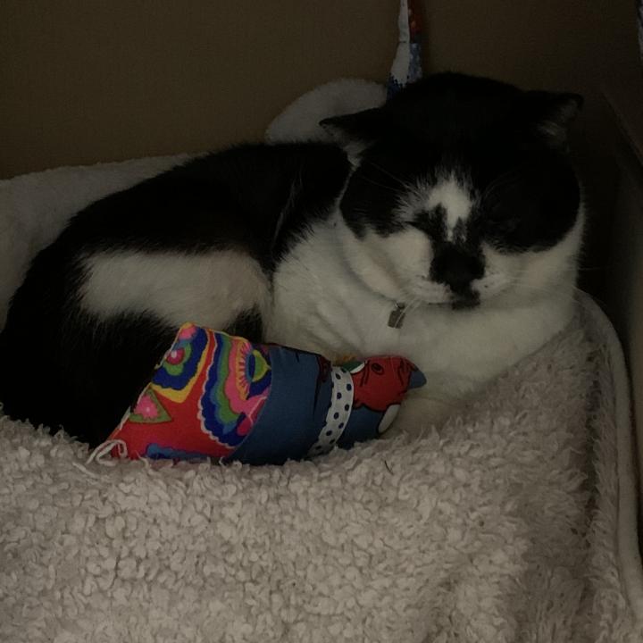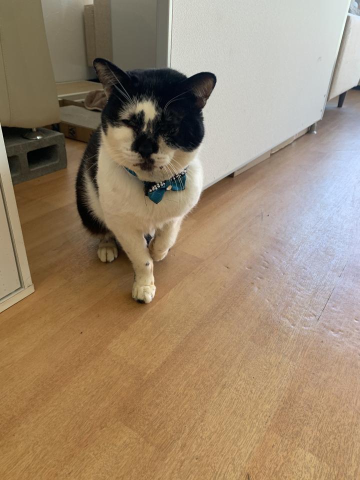 青いおリボンの🎀首輪で少しは可愛くなったかな?😊