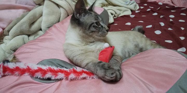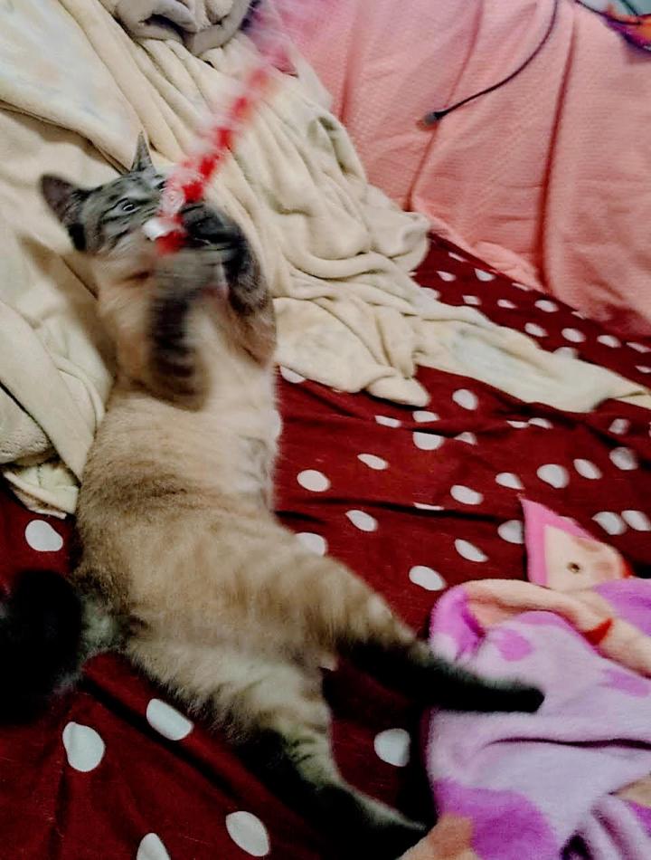 新しいねずみちゃんをじゃらしにつけたら 気に入りすぎて止まりません・・・