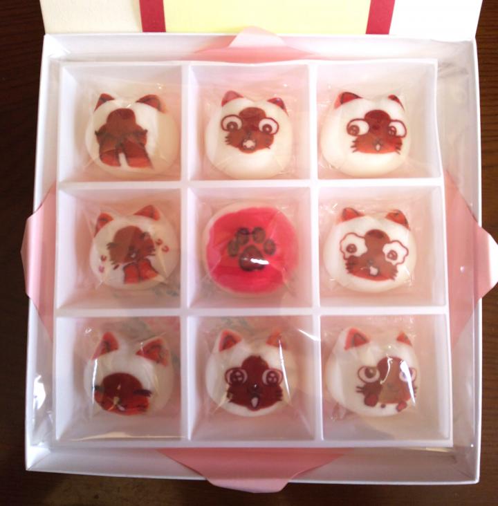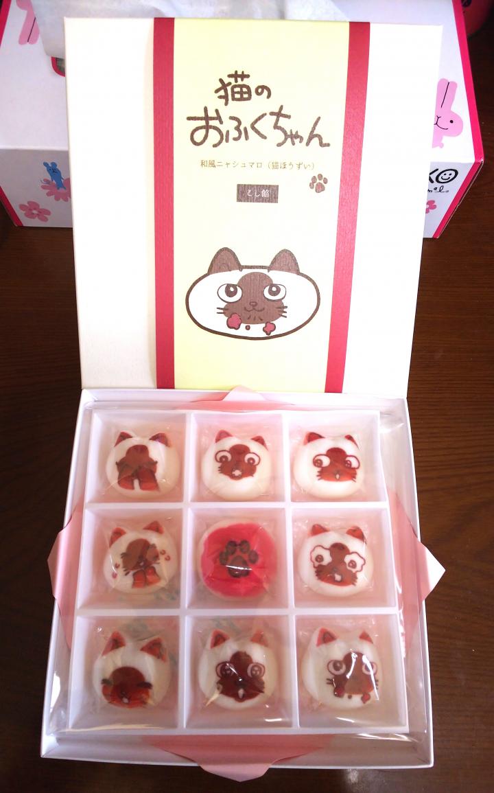 今回、にゃんこマシュマロの中はこし餡です。