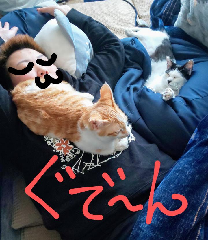 加えて寒の戻りでコタツから出られず一人と2匹はぐで~んとマッタリしておりました✌️😊
