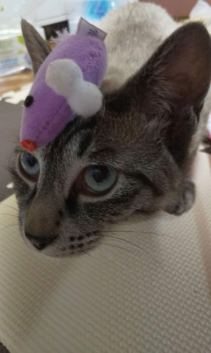 新しいじゃらしがモフモフのピンクのじゃらしで何かが怖いらしく