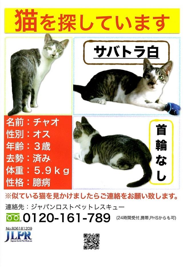 チャオの失踪直後にも偶然話すことがありチラシを渡していたのですが