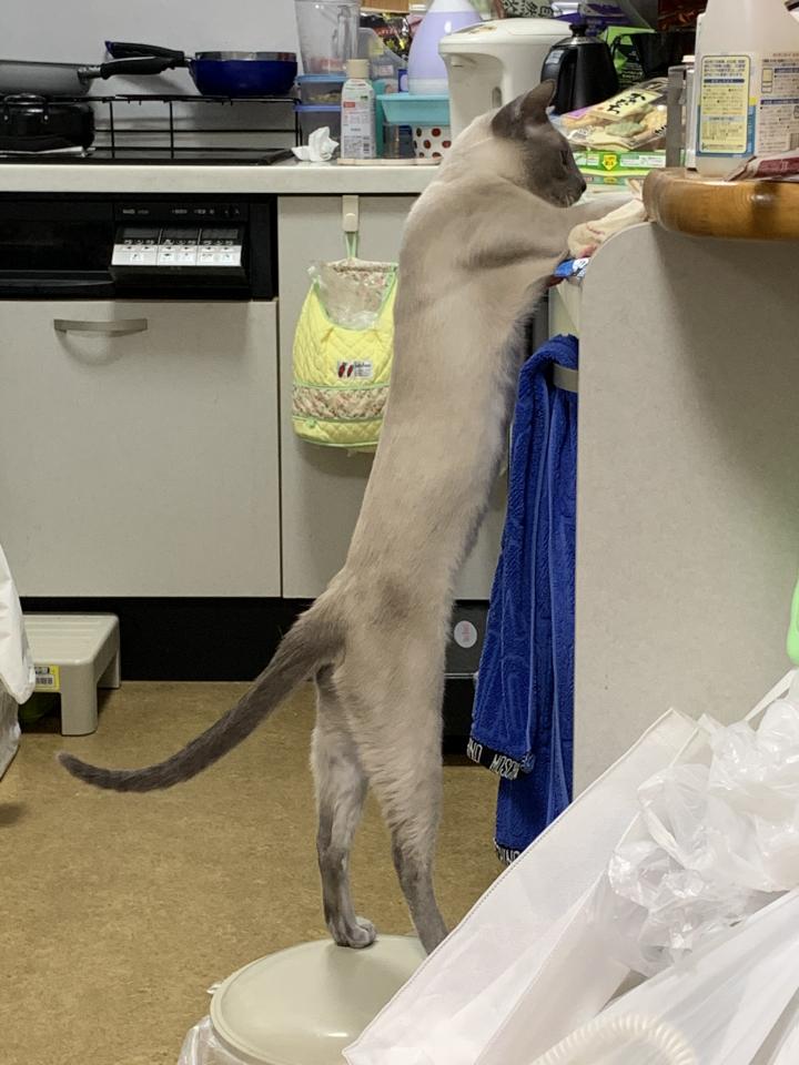 それに、とうとうけんすいだけで調理台に乗ってしまいました。