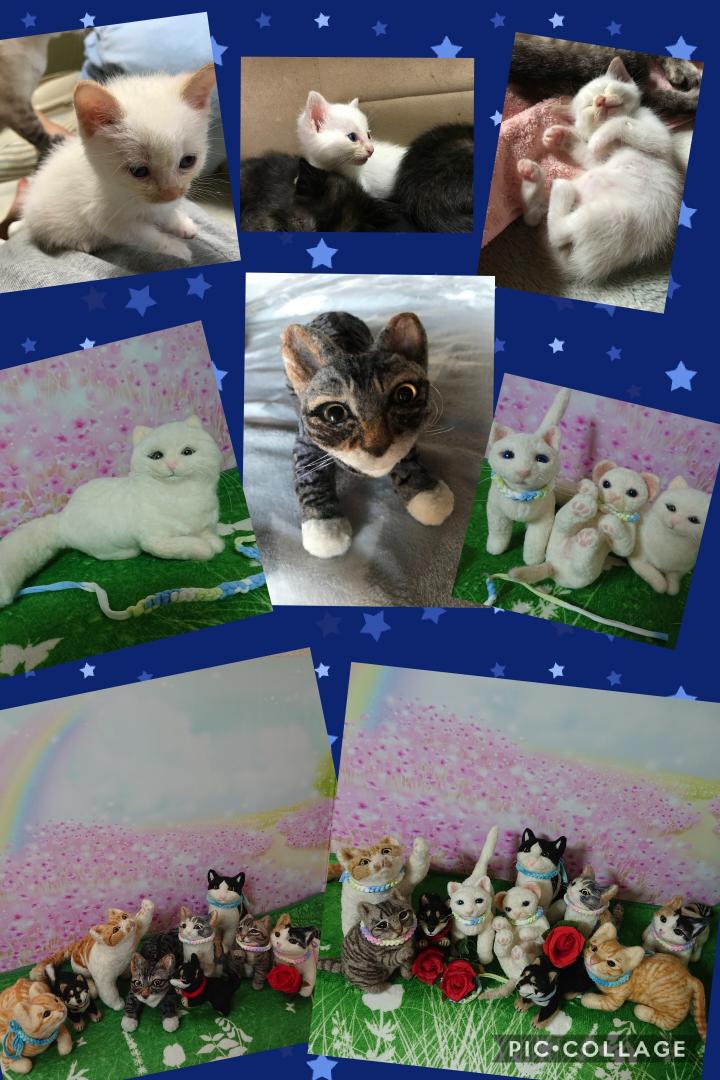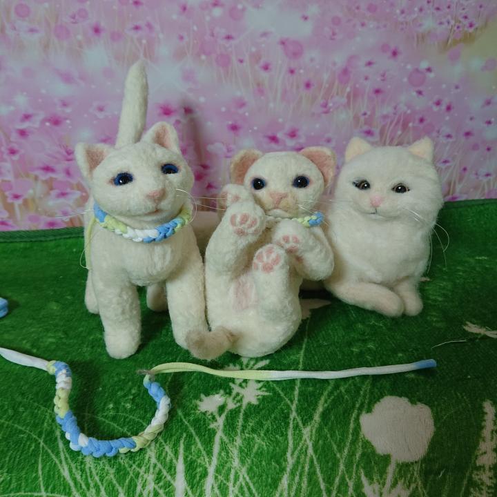 二人とも白にゃんで、うちにいたペルシャのぺルちゃんをお母さん代わりに見立て側におき、仕上がってお見送りするまで大切に保管していました。