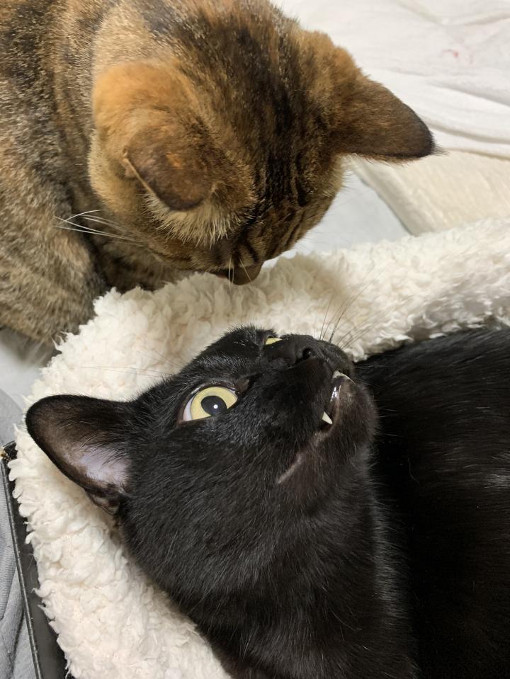 毎朝の出勤時には、空気砲&猫ぱんち&噛みつき&むきっ歯からのシャーがお約束。