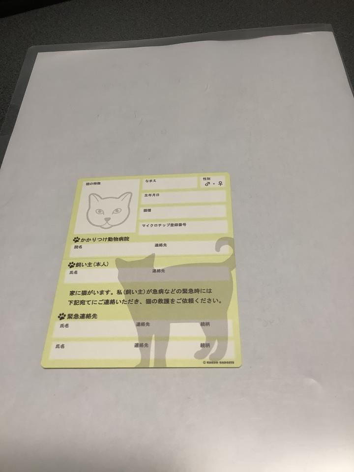 独り身なので、自分に何かあった時ににゃんずが助かるように、緊急連絡先カードを買いました。何も無いのが一番なのですけどね。