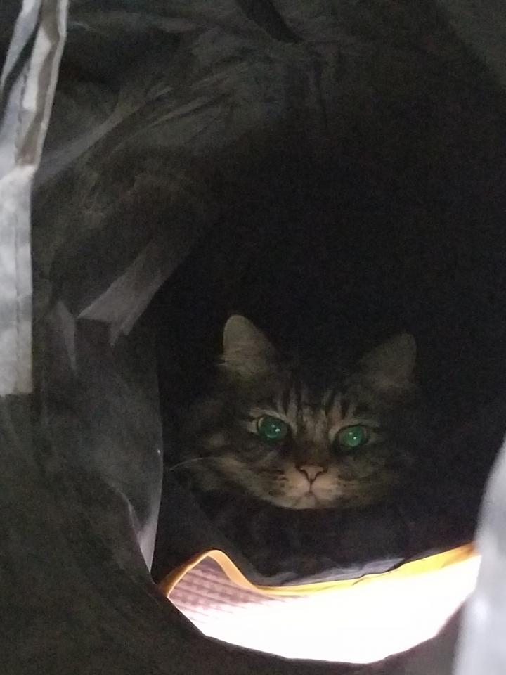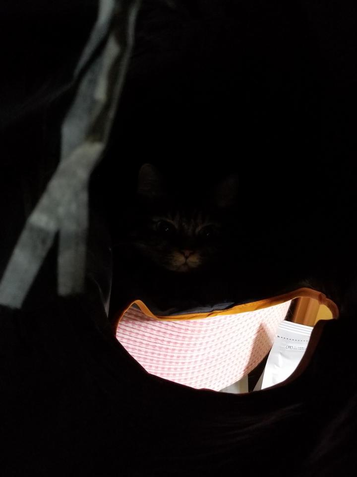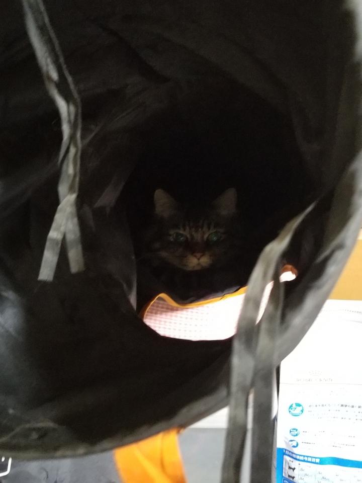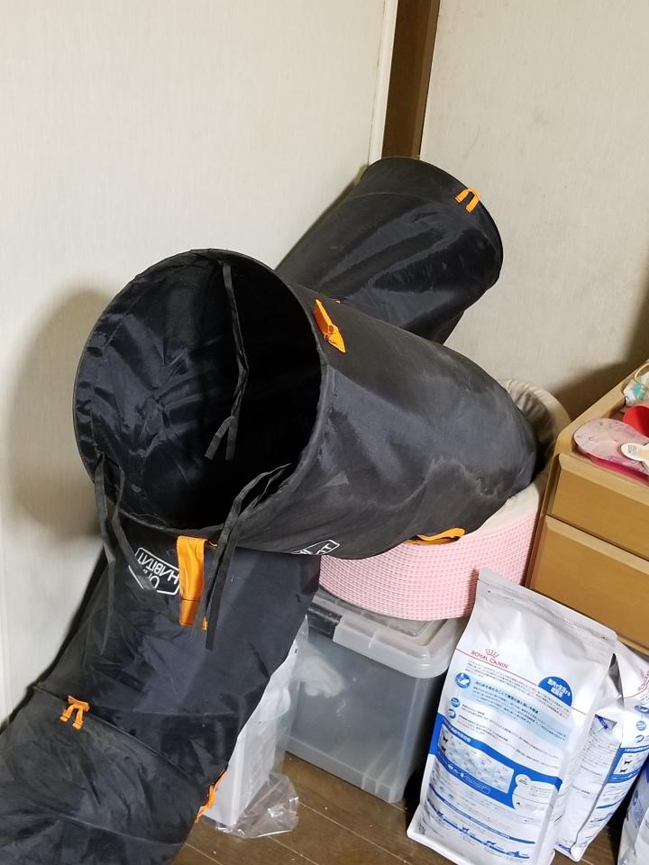 んなわけは無く、家の可愛い猫娘のきなこがトンネルに入っているだけです(笑)