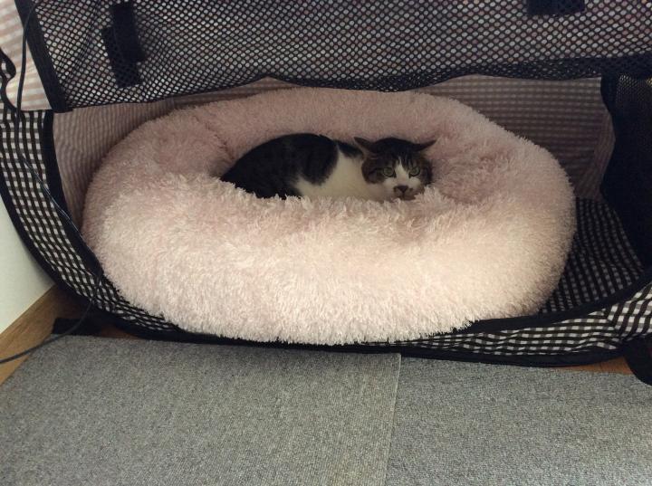 昨夜 ソラの危険を考え洗濯ネットに入れ爪切りしようと考えたとらみー。