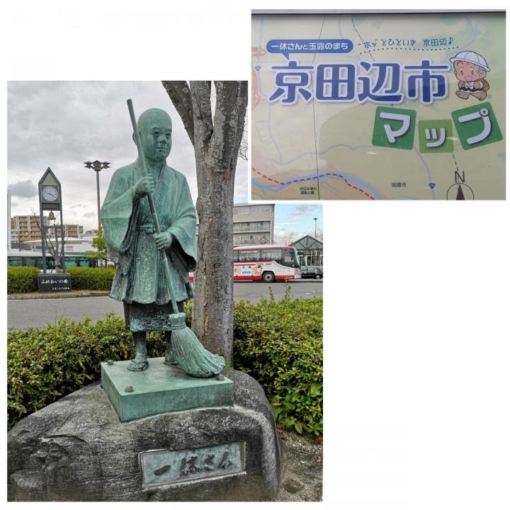 (松井山手の駅前。へー、京田辺は一休さんのとこか。)