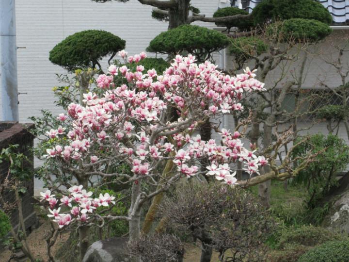 隣の家の白い花の木蓮が咲き終わってから我が家の薄桃色の木蓮が咲きます