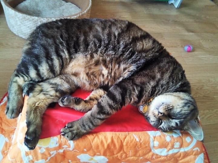 キジトラにて割と毛並がいい大人猫の模様…オーバー!!