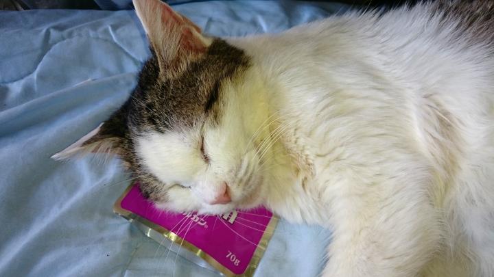 でも少し前の日、好物だったパウチを、1/3も食べてくれたのです。その次の日も。それどころか、ヒザに乗ってくれた…。