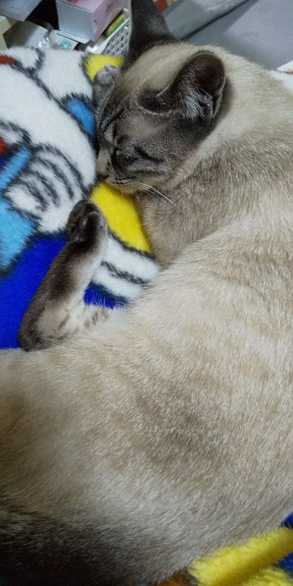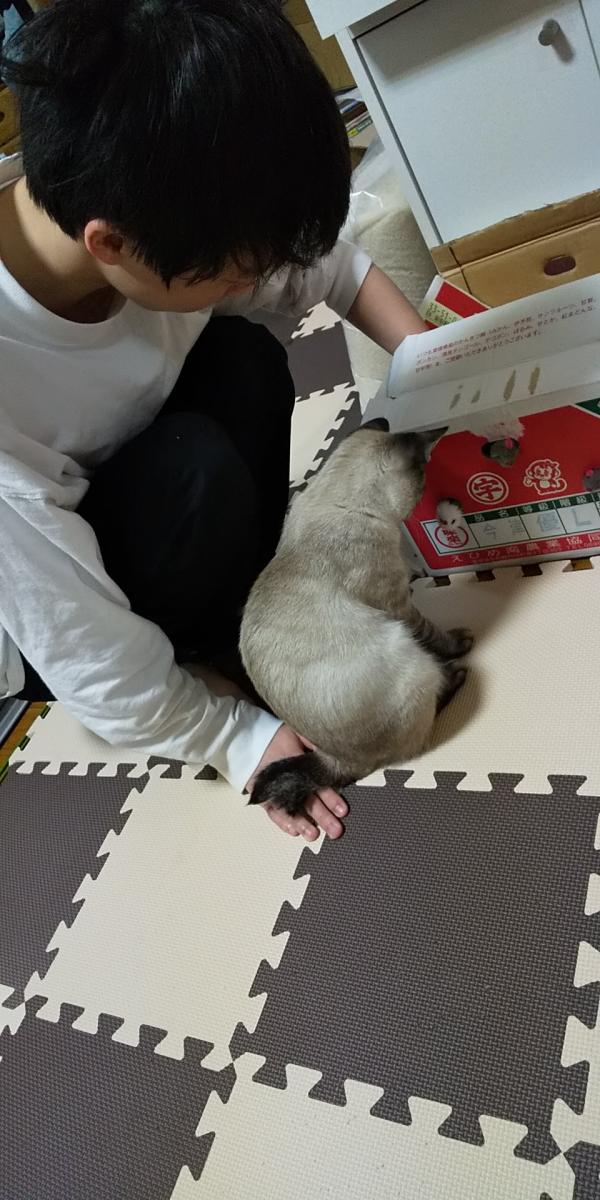 お母さんのひざでシャルルは今日もまったりです(笑)