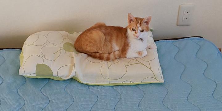 判明した途端に枕の上でくつろぎ始めるナッツにゃん😁