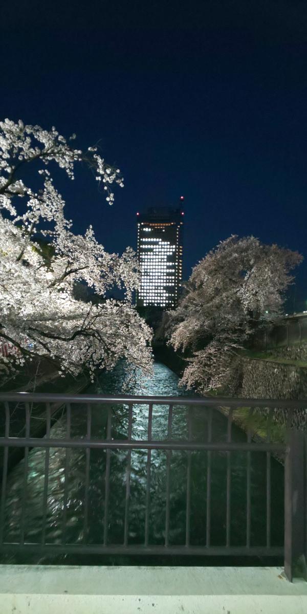 家族全員でマスク装着❗️完全武装‼️で夜桜を見に公園へ🌸