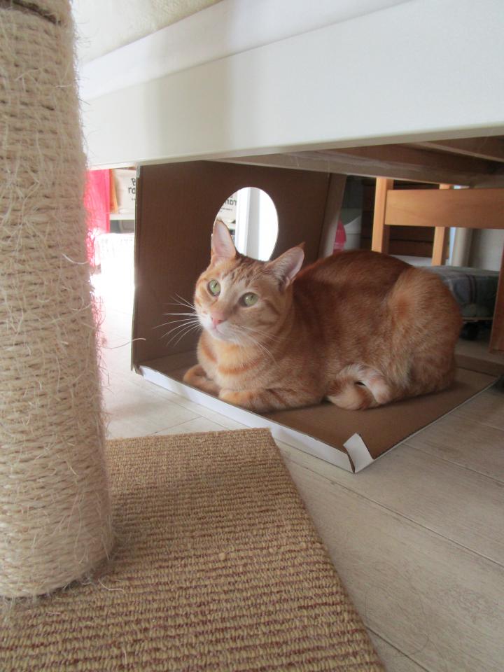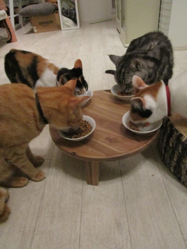 ちゃぶ台を、ネオがお立ち台にしていました。