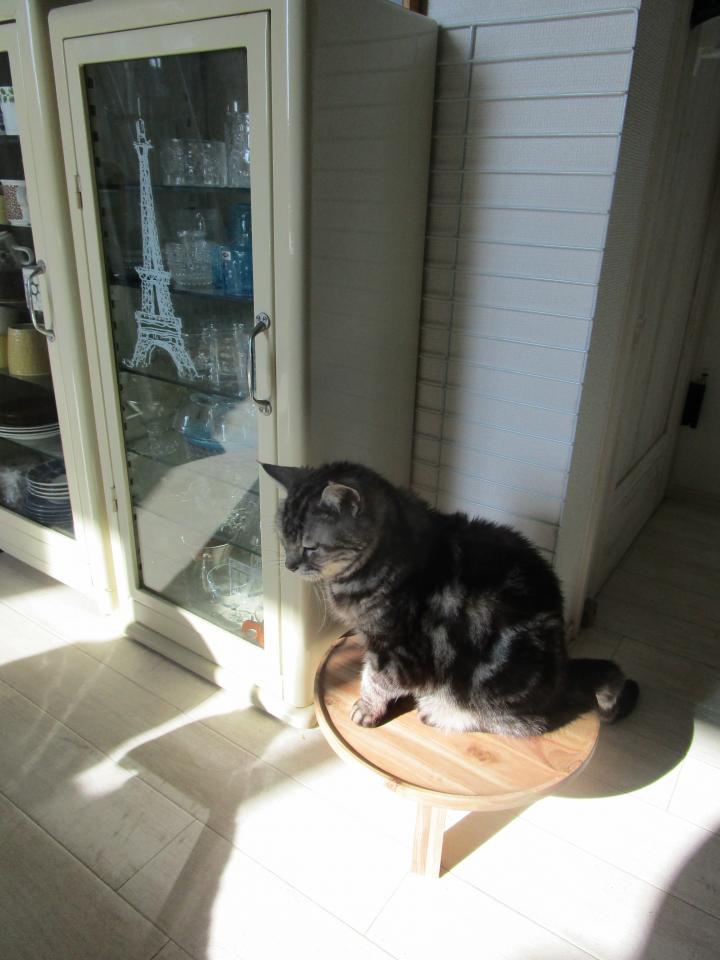 テルちゃんは、いつもニトリのキリカブ・スツールで待っていて