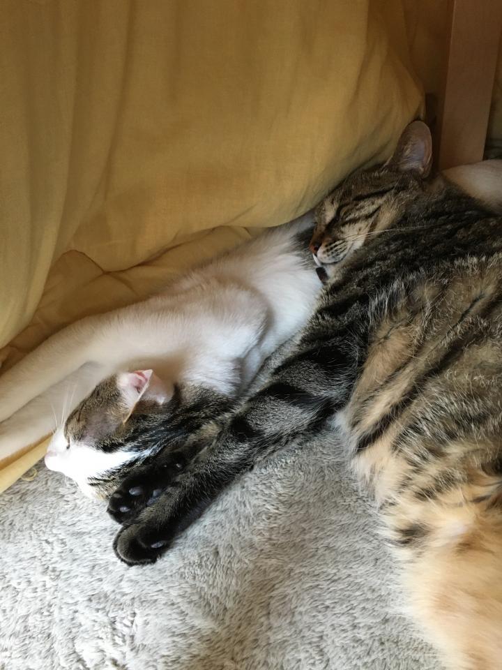 普段はミルクがゲンを枕にするのですが、ゲンがミルクを枕にしている初観測事案🤣