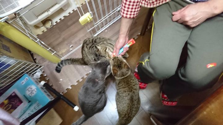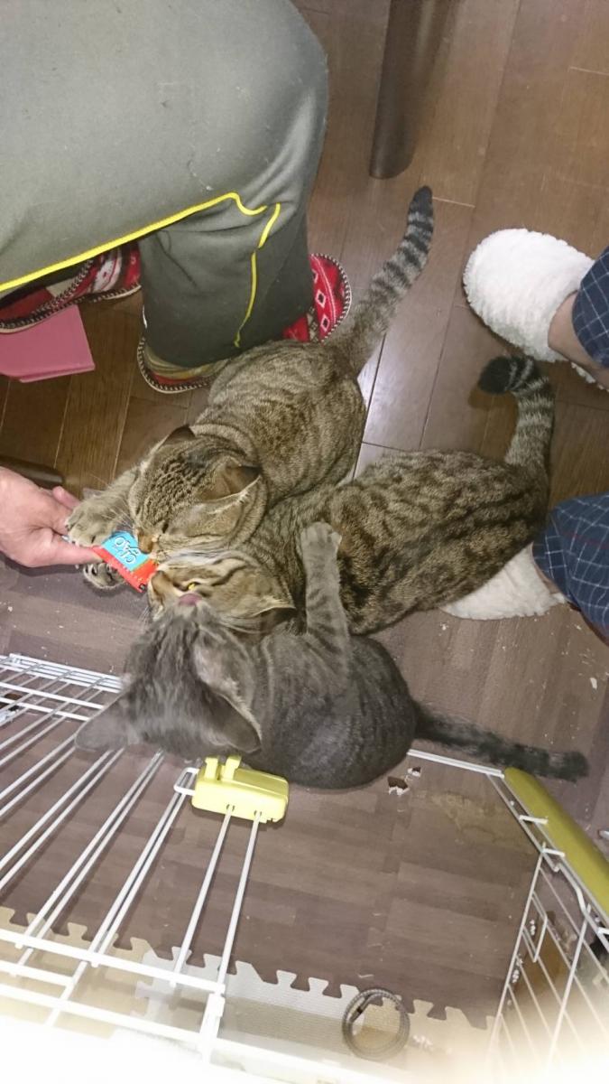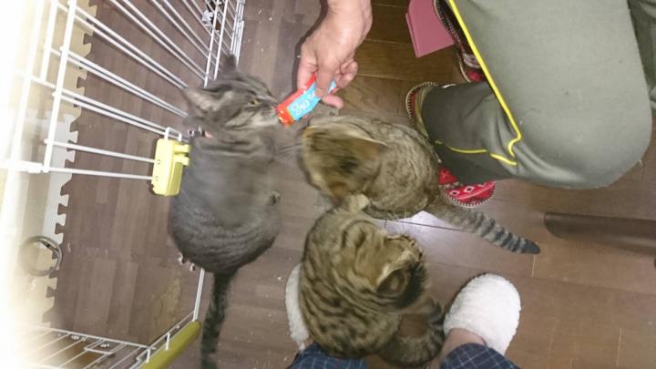 風花姉さんはどっか行ってたし、はやくんとすずちゃんはとうさんにケージに入れられて、ワタシ一人ちゅーるもらったぁ‼️