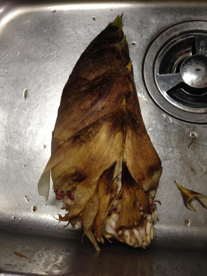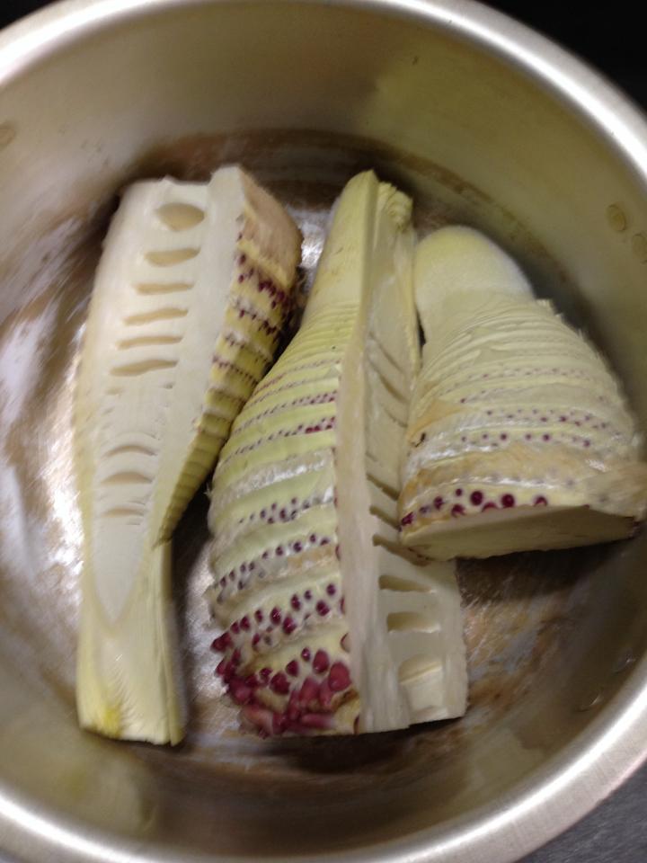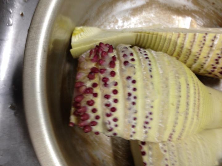 皮を剥くと、根元のブツブツが濃いピンク色をして居て、掘りたての証拠です。