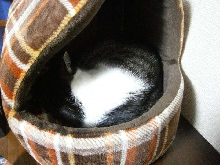 夜はいつもこのベッドで寝ています。でも朝起きるときには私の布団の中に^^
