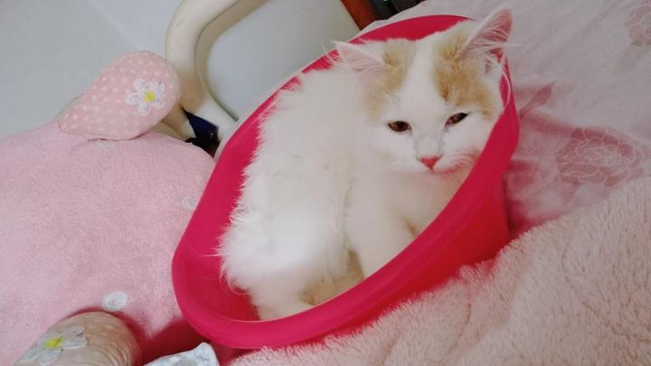 と、スイくんのケージを見たら、猫ベッドにしていた「たらい」がご飯の上にかぶさっていました^^;