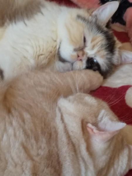 7年の間に、一度も他の猫と一緒にいるのを見たことがないです。