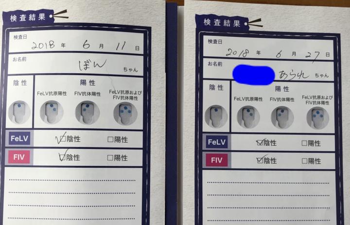 うちの猫たちは皆んなエイズ、白血病の検査をしているんです。