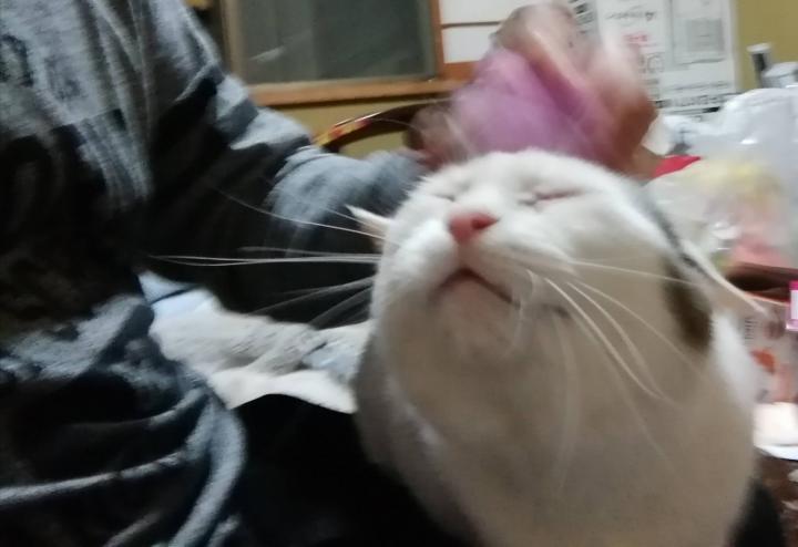 気持ちいい、抜け毛捕集、スキンシップと、ミコさんも私も嬉しい日課です。
