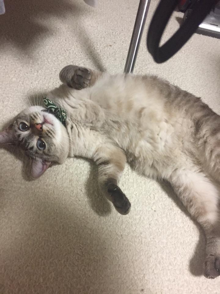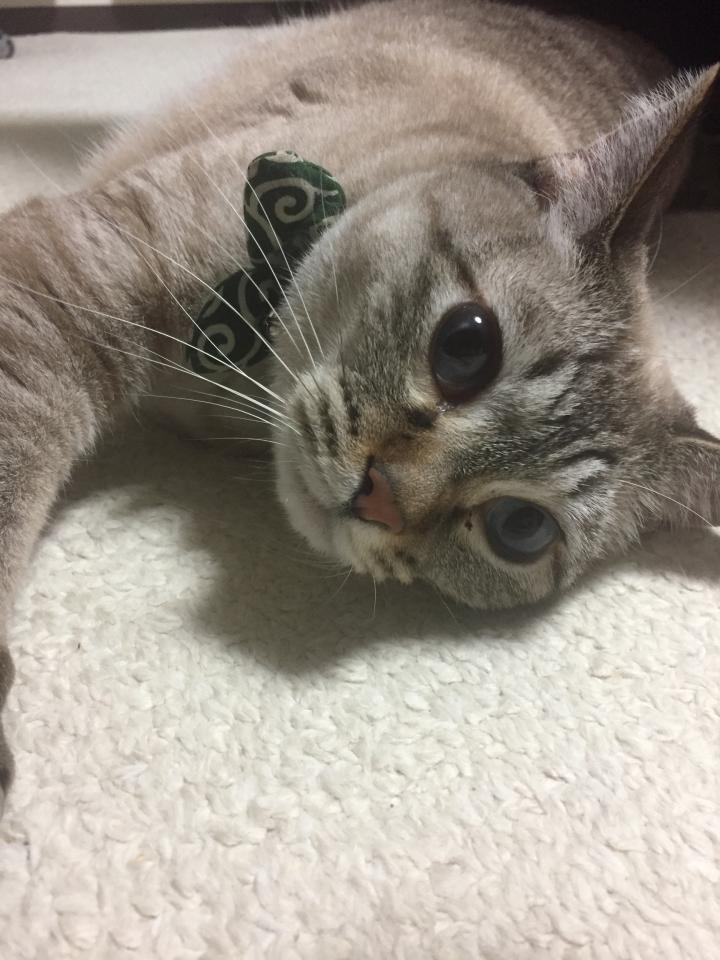 遊んで〜撫でて〜と、膝に乗ったり写真の様にお腹を出してコロンとしてくれたり。