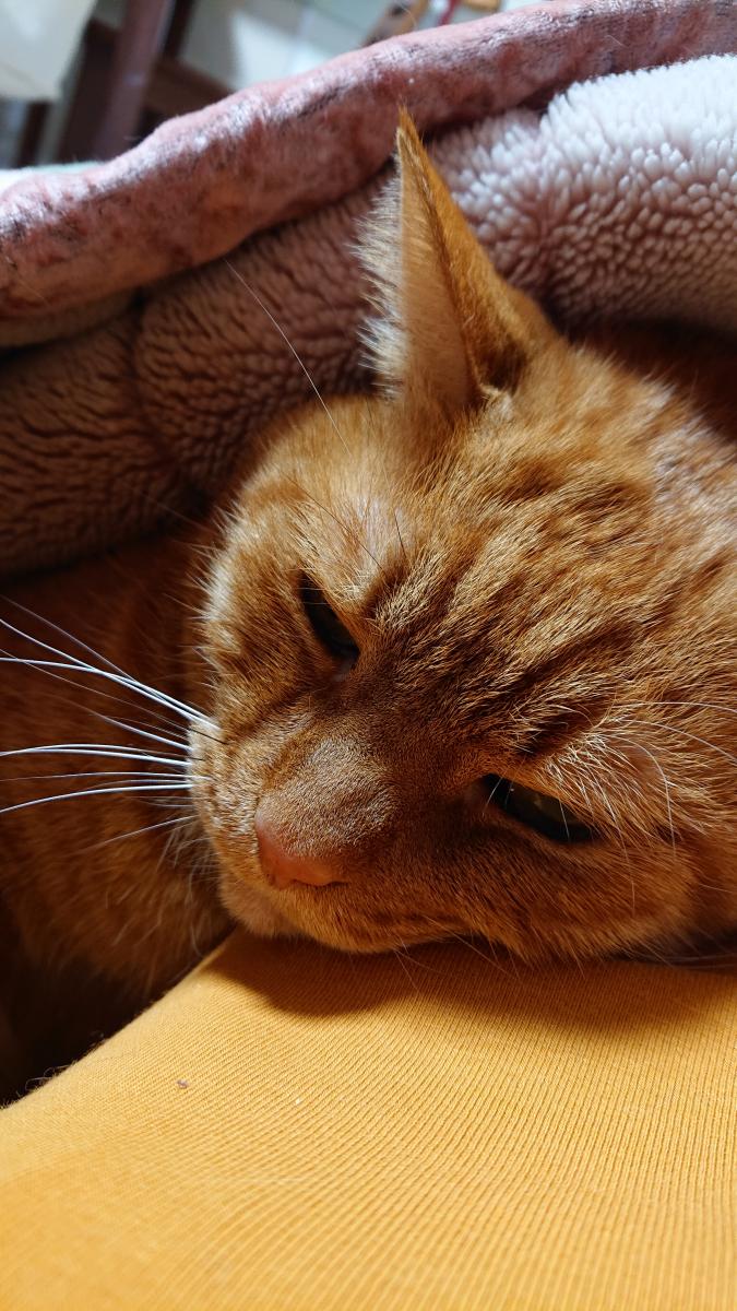 小麦が私の腹を枕にして寝てる、可愛いさMAXです。