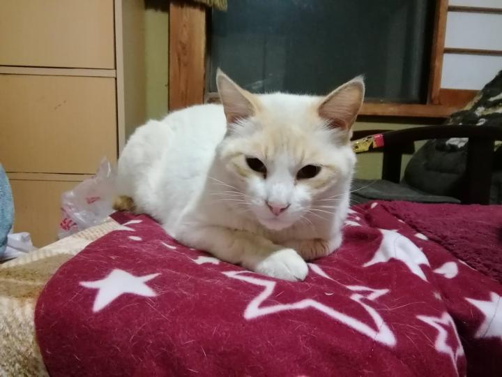 まるだけは、こたつがあまり好きではない様で、毛布上にだけ来ます。