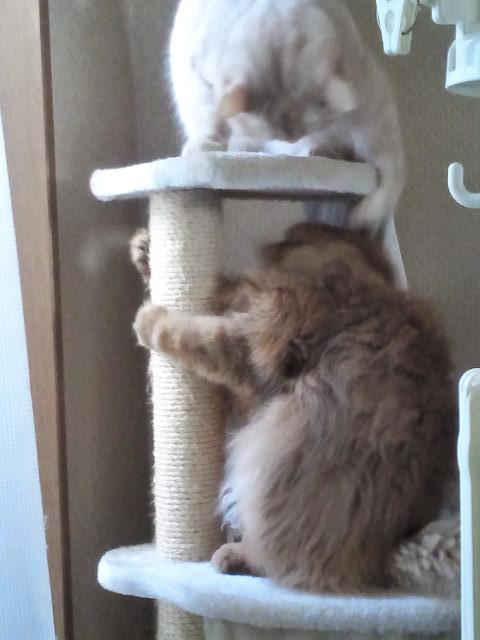 上にいる子はタワーが揺れるので怒って叩くんだけど