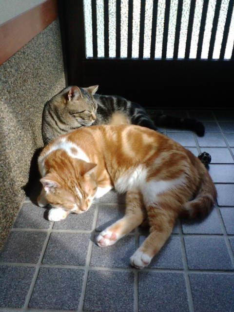 それに引き換えて育ち過ぎの貝とさくら、この親子は玄関口のここがお気に入りみたいです。
