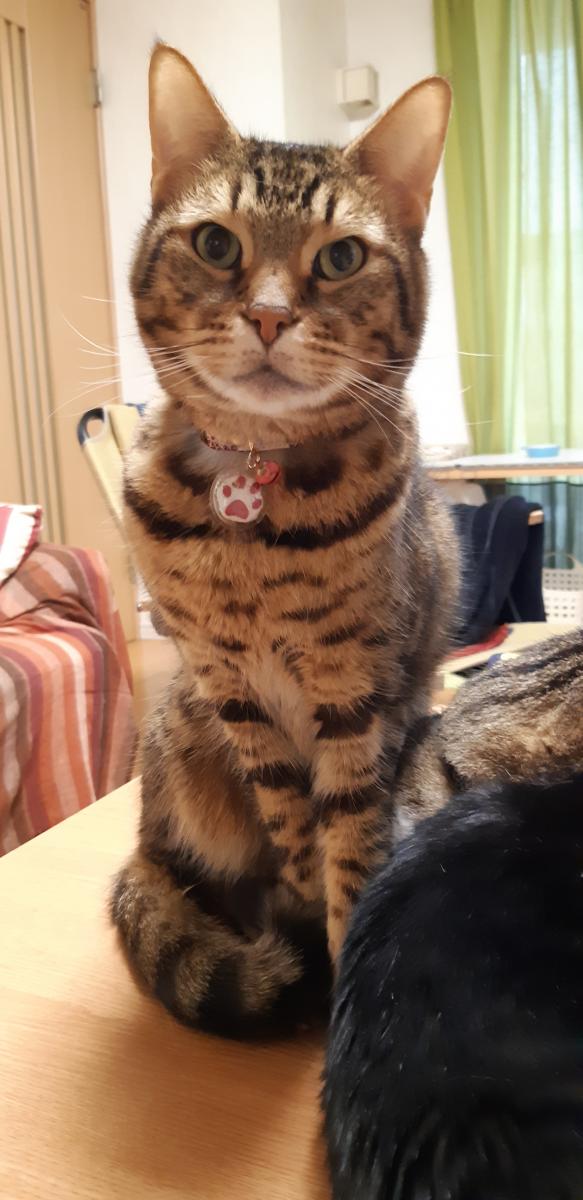 でも人間のゴハンの時は一緒に食べたくて、脇の下や肩の上から何とか食事に近づこうとします。