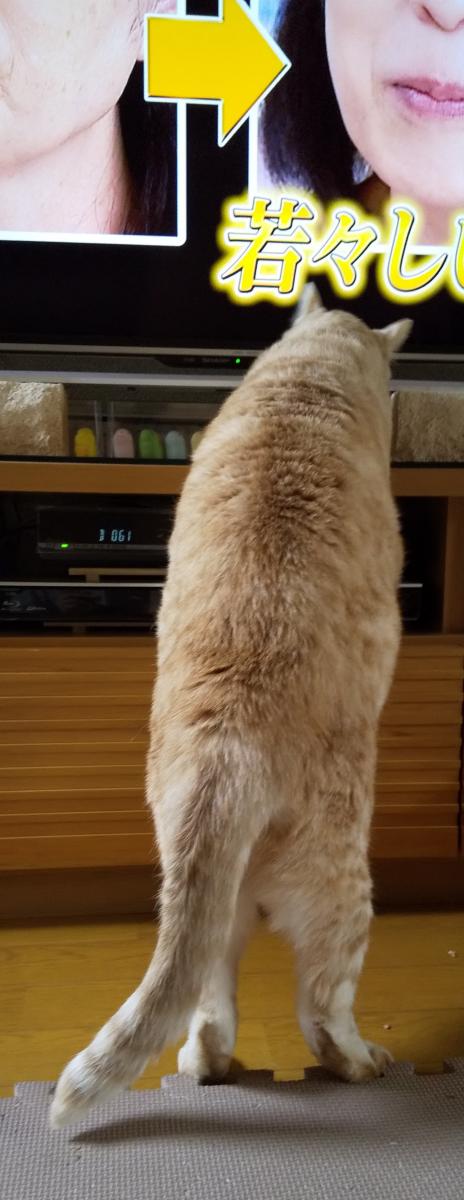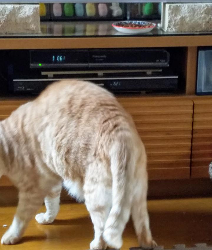 TVの脚が邪魔で顔が入らない場所だけど