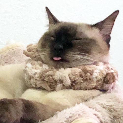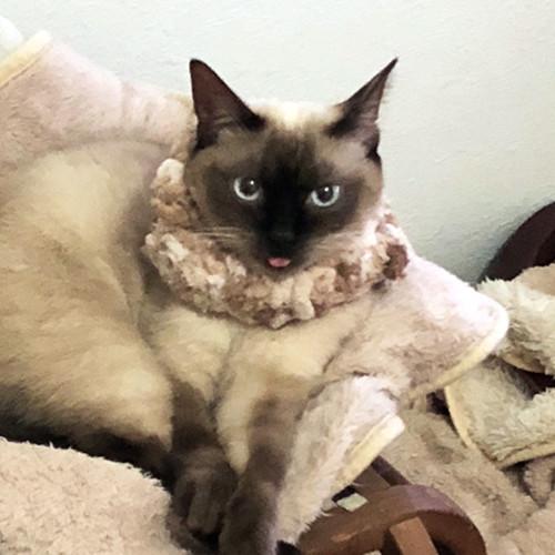 これが繰り返されるので、姫ちゃにはクビを保護するスヌードが必要なのである。