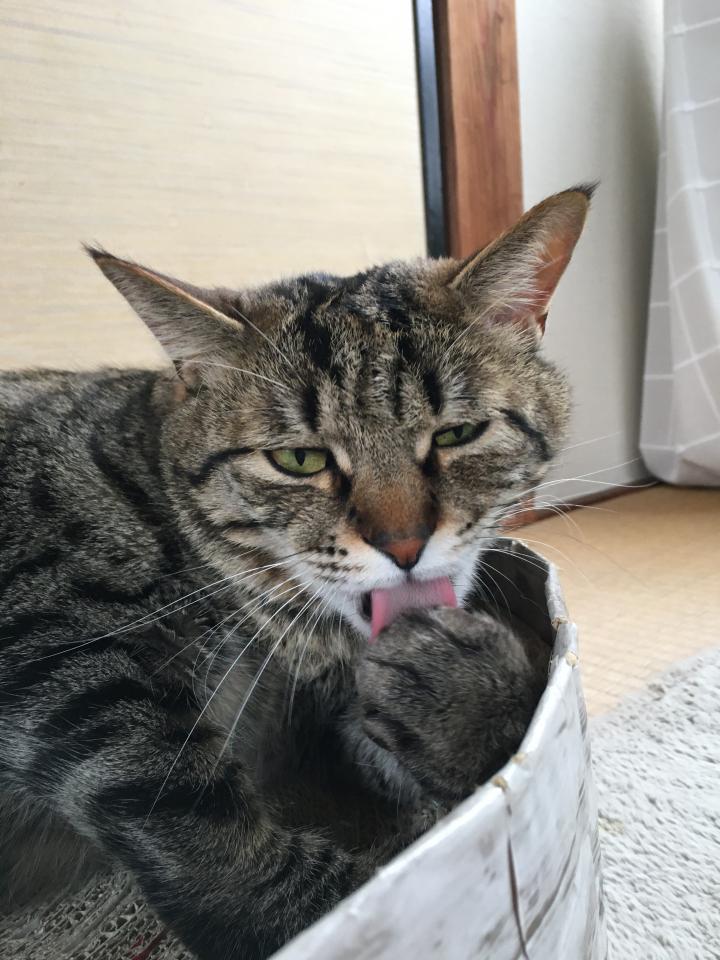 そして、顔を洗ってる所が余りにも可愛すぎてカシャカシャ写真撮りまくっていたら、こんな不機嫌な表情に💧