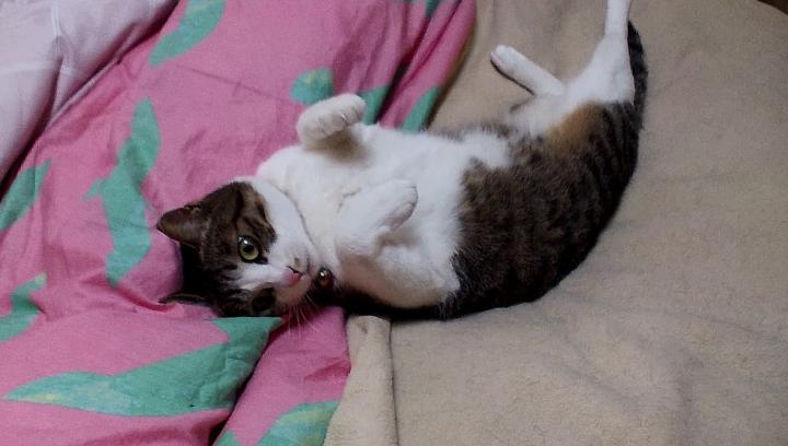 「うん、さらっぴんや。気持ちええわ。ごろごろごろ。」